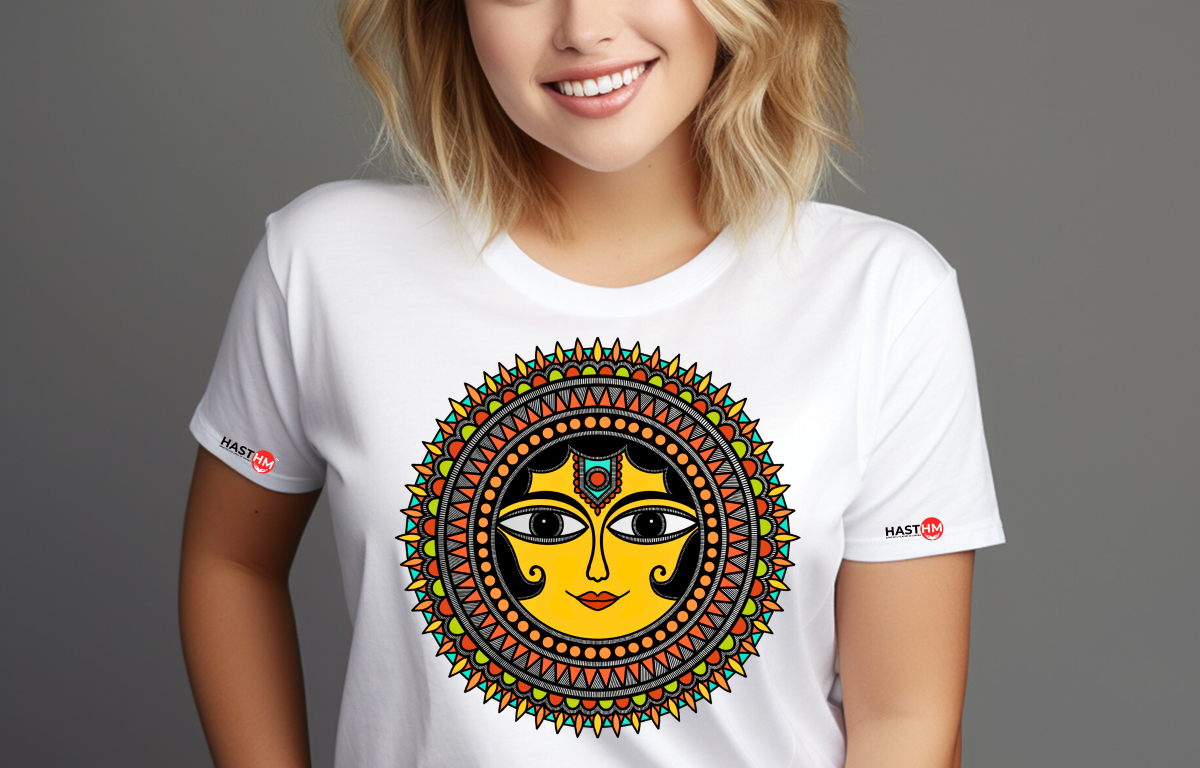 Mithila Art Printed T-Shirt – Handcrafted Madhubani Folk Design | Unisex Cotton